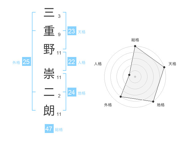 三重野 崇二朗さんを姓名の画数から五運を鑑定