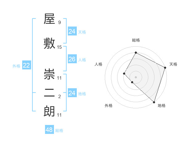 屋敷 崇二朗さんの天格は24画の5点!