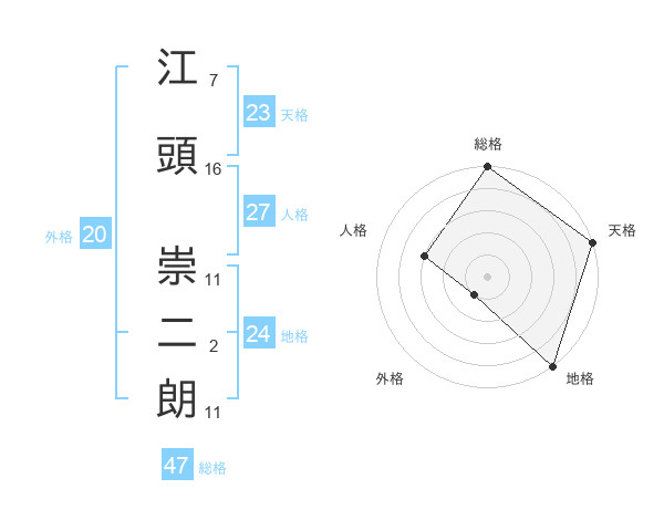 江頭 崇二朗さんを姓名の画数から五運を鑑定