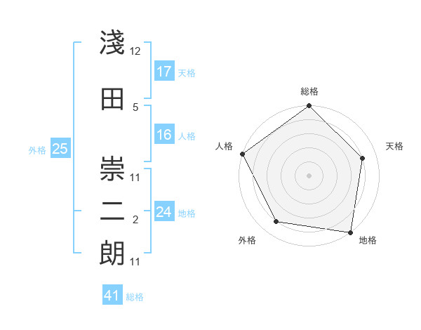 淺田 崇二朗さんの総格は41画の5点!