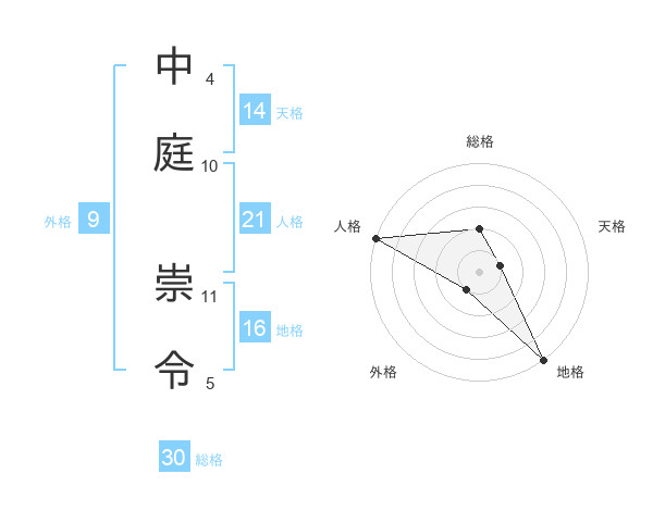 中庭 崇令さんを姓名の画数から五運を鑑定