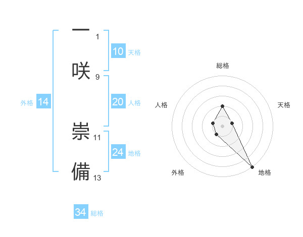 一咲 崇備さんの総格は34画の2点!