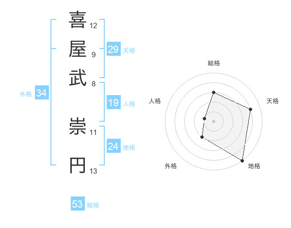 喜屋武 崇円さんを姓名の画数から五運を鑑定