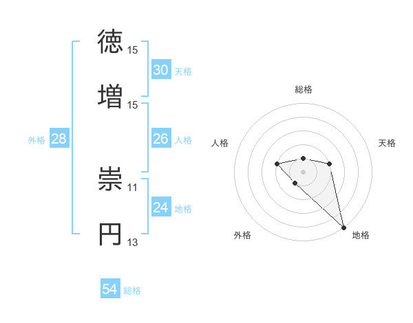 徳増 崇円さんの天格は30画の2点!