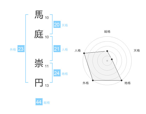 馬庭 崇円さんの外格は23画の5点!