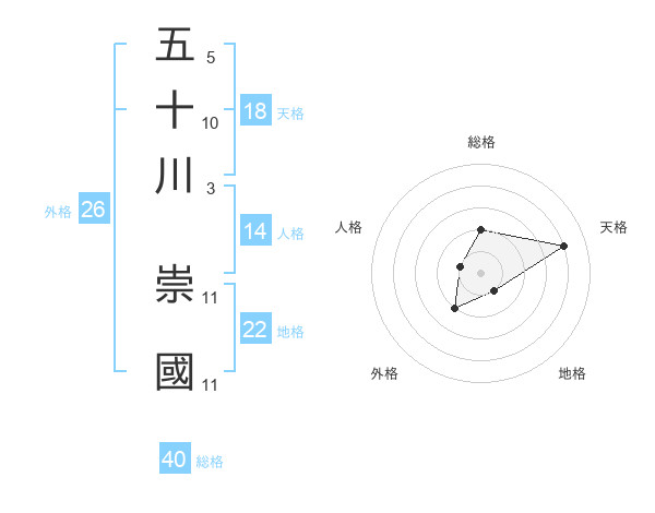 五十川 崇國さんの天格は18画の4点!