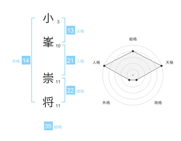 小峯 崇将さんを姓名の画数から五運を鑑定
