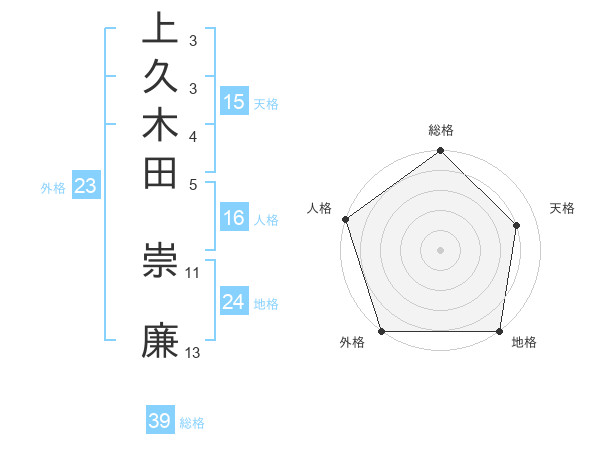上久木田 崇廉さんを姓名の画数から五運を鑑定