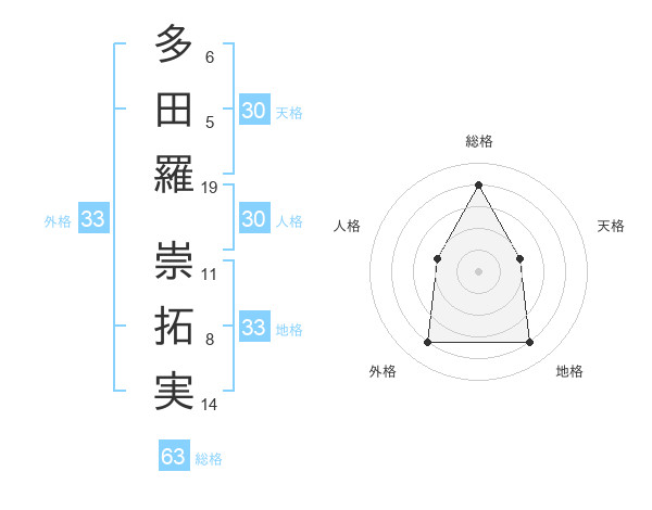 多田羅 崇拓実さんの総格は63画の4点!