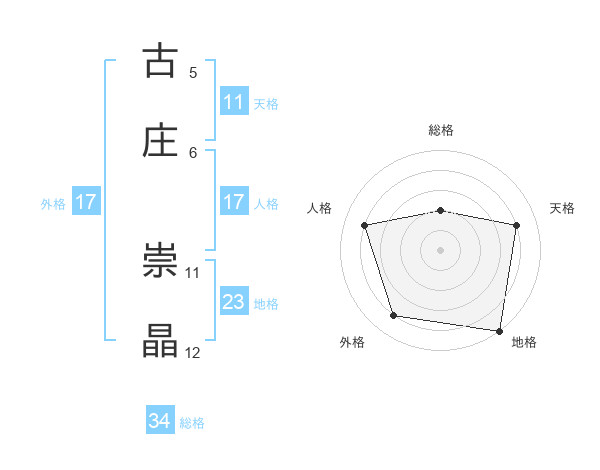 古庄 崇晶さんを姓名の画数から五運を鑑定