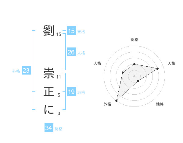 劉 崇正にさんを姓名の画数から五運を鑑定