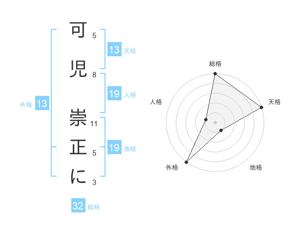 可児 崇正にさんの天格は13画の5点!