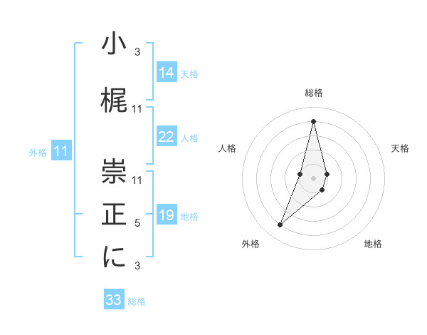 小梶 崇正にさんの外格は11画の4点!