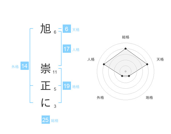 旭 崇正にさんを姓名の画数から五運を鑑定