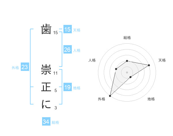 歯 崇正にさんの天格は15画の4点!