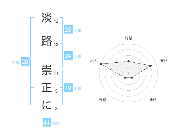 淡路 崇正にさんを姓名の画数から五運を鑑定