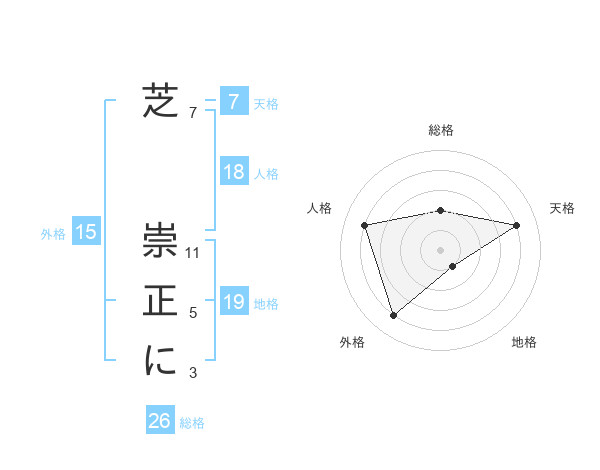 芝 崇正にさんの総格は26画の2点!