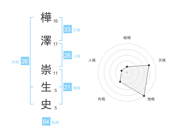 樺澤 崇生史さんを姓名の画数から五運を鑑定
