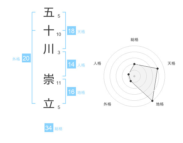 五十川 崇立さんの天格は18画の4点!