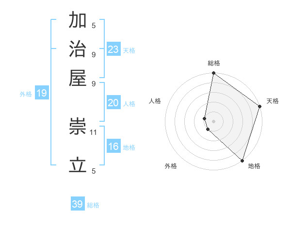 加治屋 崇立さんを姓名の画数から五運を鑑定