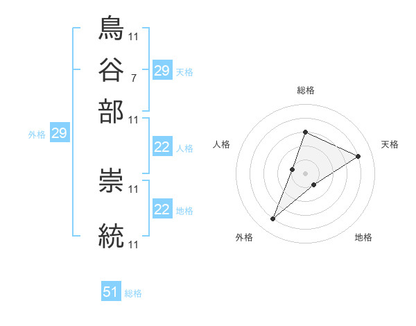鳥谷部 崇統さんを姓名の画数から五運を鑑定