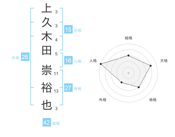 上久木田 崇裕也さんを姓名の画数から五運を鑑定