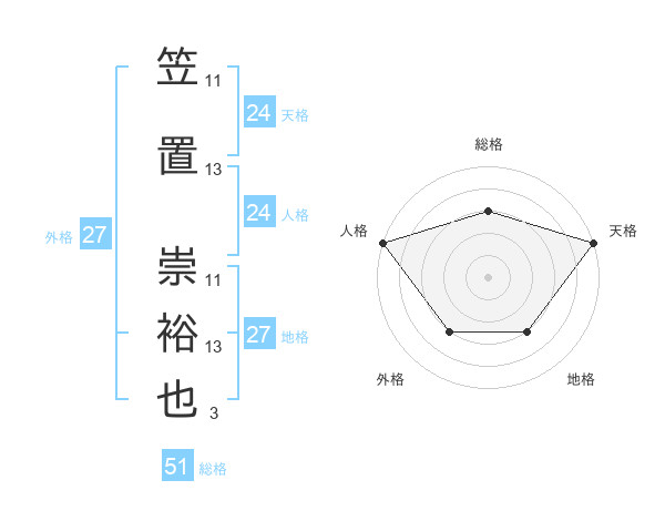 笠置 崇裕也さんを姓名の画数から五運を鑑定