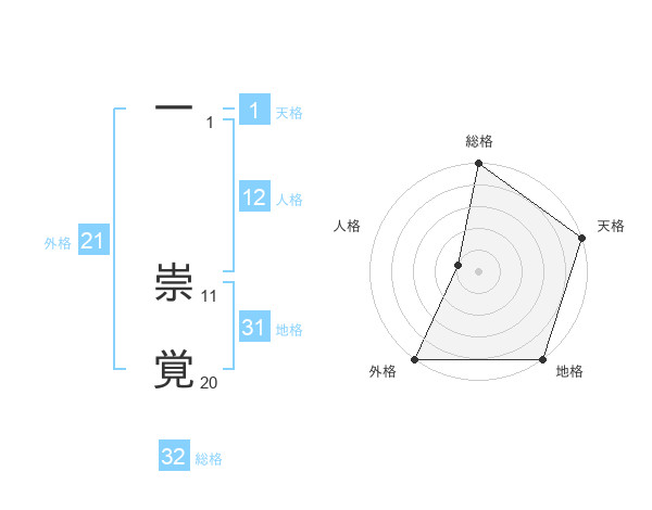 一 崇覚さんの外格は21画の5点!