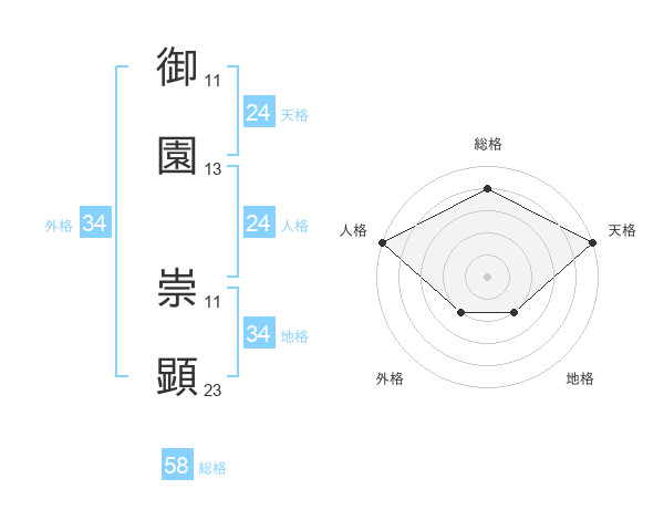御園 崇顕さんの総格は58画の4点!