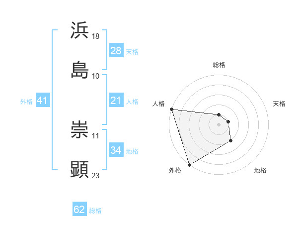 浜島 崇顕さんを姓名の画数から五運を鑑定