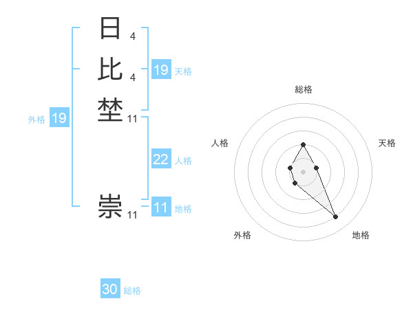 日比埜 崇さんを姓名の画数から五運を鑑定