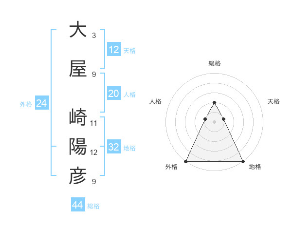 大屋 崎陽彦さんを姓名の画数から五運を鑑定