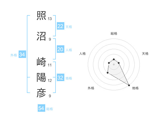 照沼 崎陽彦さんの総格は54画の1点!