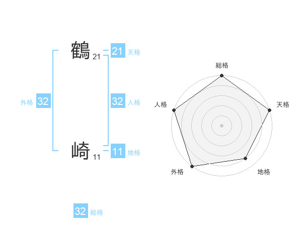 鶴 崎さんの総格は32画の5点!