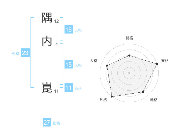 家系が持つ宿命的な運勢を表します。祖先から受け継いだ苗字ですので自分の力が及びません。家柄を象徴します。
