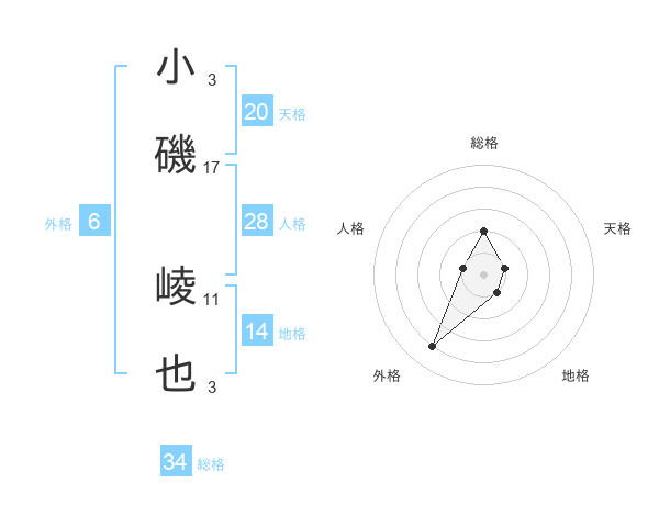 小磯 崚也さんの天格は20画の1点!
