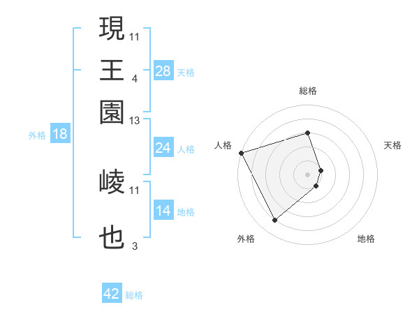 現王園 崚也さんを姓名の画数から五運を鑑定