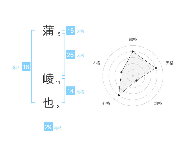 蒲 崚也さんの天格は15画の4点!