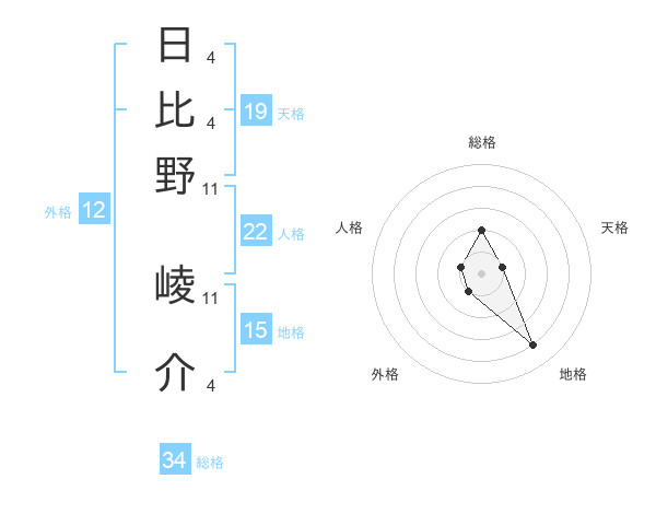 日比野 崚介さんを姓名の画数から五運を鑑定
