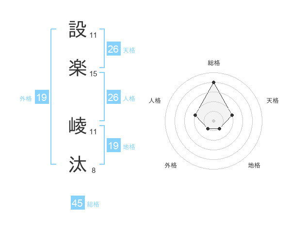 本サイトの鑑定結果の正当性は保証しません。鑑定結果は参考程度にお読みください。実際の名づけにご利用される場合は、姓名判断についてご自身でよくお調べください。