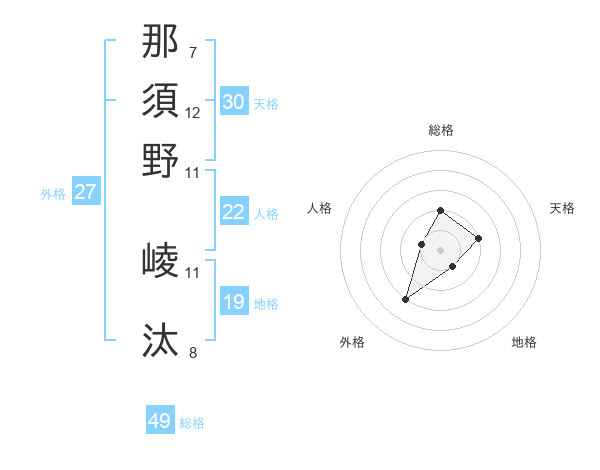 那須野 崚汰さんの天格は30画の2点!