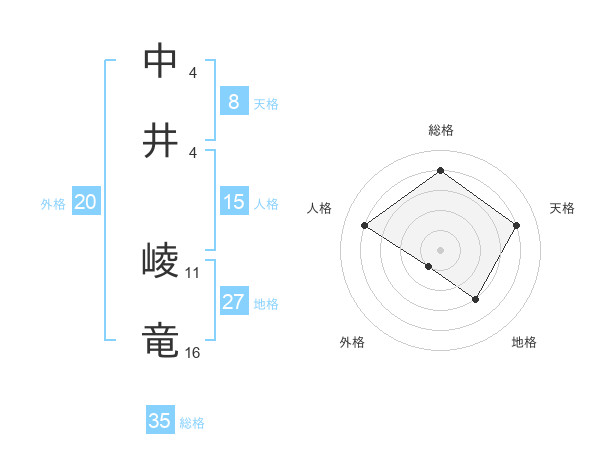 中井 崚竜さんを姓名の画数から五運を鑑定