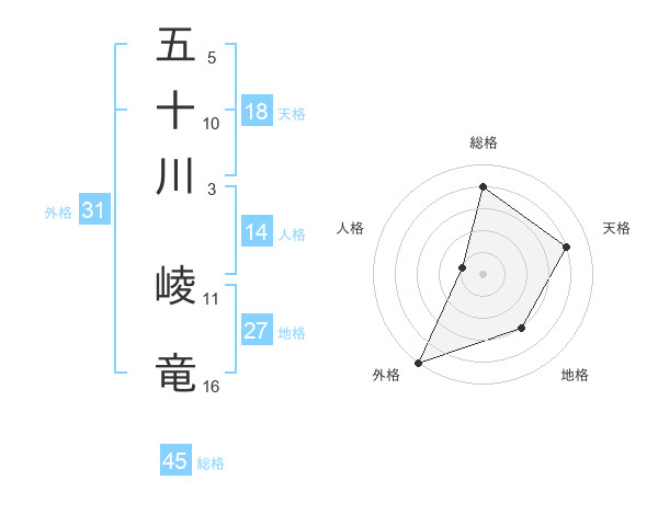 五十川 崚竜さんを姓名の画数から五運を鑑定