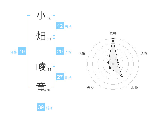 小畑 崚竜さんを姓名の画数から五運を鑑定