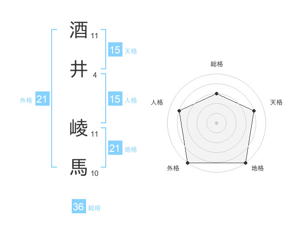 酒井 崚馬さんを姓名の画数から五運を鑑定