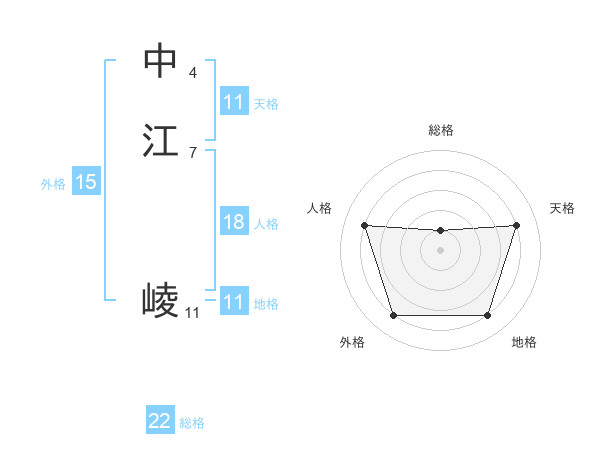 中江 崚さんの総格は22画の1点!