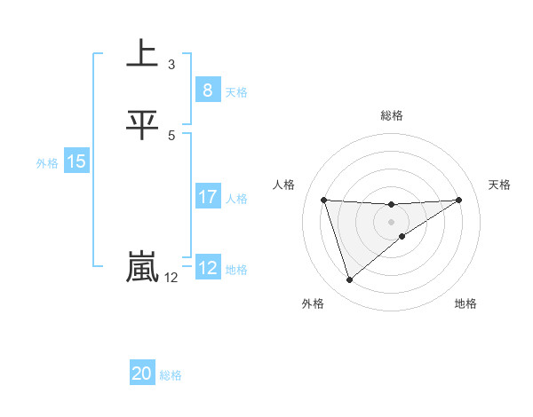 上平 嵐さんの地格は12画の1点!