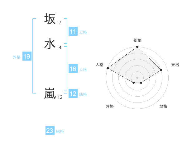 坂水 嵐さんの外格は19画の1点!