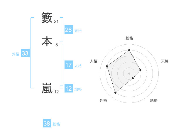 籔本 嵐さんの総格は38画の4点!