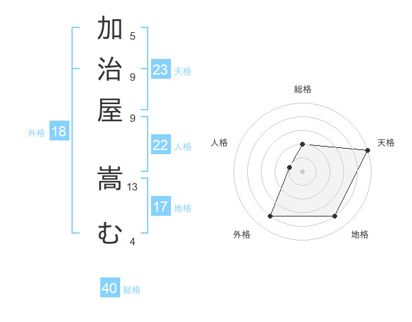 加治屋 嵩むさんの天格は23画の5点